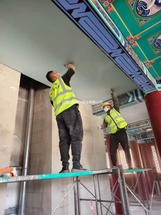 Application Advantages 1. A1 Class Fire Resistance: Putting "Invisible Armor" on Ancient Buildings. Yuanyang Weili low-density gray silicon base panels have passed the national A1 class fire resistance certification. The 9mm panels have a fire resistance rating of 2 hours, are non-combustible when exposed to open flames, and produce no smoke or toxins, perfectly addressing the fire safety challenges of the wooden structures in ancient buildings. The renovated ceiling of Yongding Tower not only passed the fire safety inspection but also minimized the fire risk, building a solid safety defense for cultural heritage. 2. Surface decorativeness: Restoring the "canvas gene" of traditional art. The surface of the board has been treated with special craftsmanship, featuring excellent adhesion and flatness, allowing direct hand-painting with traditional mineral pigments. The restoration team accurately replicated the "auspicious clouds and cranes" colored paintings on the base board. The colors have high saturation, are resistant to cracking and peeling, and remain as bright as new despite seasonal changes in temperature and humidity, achieving a seamless integration of "original craftsmanship and new materials". 3. Lightweight and high-strength: A "friendly partner" for ancient building structures