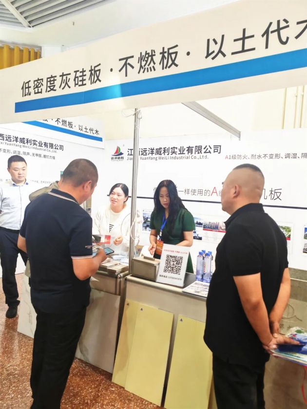 During the three-day exhibition, the Yuanyang Weili exhibition area was crowded with people. The low-density gray silicon-based panels it displayed became the focus of everyone's attention. This type of panel, with its characteristics of being lightweight yet strong, having strong fire resistance, good weather resistance, and being lightweight and easy to construct, has won high praise from many professionals. Exhibitors and visitors stopped one after another to have in-depth exchanges with the staff of Yuanyang Weili, discussing together its broad application prospects in architectural decoration.