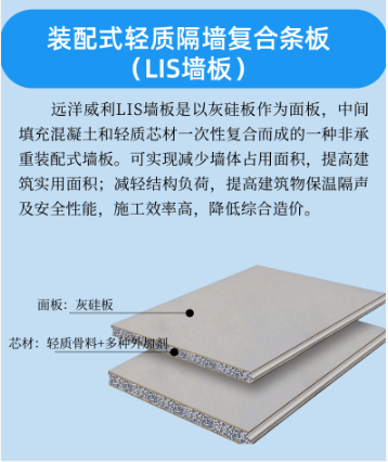 传统方案痛点: 1. 传统混凝土砌筑工艺需7-10天/段,难以匹配项目进度; 2. 现场湿作业导致粉尘污染,影响其他工序交叉施工; 3. 防火涂料+钢结构的复合方案成本超预算15%。 解决方案:远洋威利LIS墙板防火隔墙系统 项目团队经多方比选,最终选用远洋威利LIS-100型防火墙板,具体方案优势如下: 核心亮点一:提高施工效率 核心亮点二:出色的耐火性能 - 三层复合结构:9mm低密度灰硅基层板(外层)+混凝土和轻质骨料+9mm的低密度灰硅基层板(外层); - 通过极限耐火测试:连续4小时受火后,完整性及隔热性达标。 应用总结: 远洋威利LIS墙板在本项目的成功应用,验证了其在工业建筑领域的三大核心价值: 施工:标准化安装流程降低技术依赖; 耐火:低密度灰硅基层板三重防护结构打破传统极限; 经济:全生命周期综合成本优势显著。 该案例为同类工业厂房建设提供了创新解决方案,目前已在江西、浙江等地形成示范效应,如需了解更多技术细节或获取定制方案,欢迎联系远洋威利专业技术团队。 -应用产品介绍- ![]()