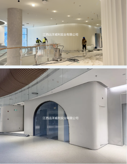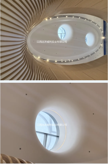 3. 曲面造型:灵动创意的实现载体 建筑内部的弧形吊顶、曲面背景墙等弯曲造型部位,检验着材料的可塑性与适配性。低密度灰硅基层板在弯曲过程中不开裂、不变形,能够精准贴合设计弧度,完美呈现出 “流动的音乐” 这一设计理念。无论是大弧度的空间转折,还是小范围的曲面装饰,板材都能轻松应对,为设计师的创意实现提供了充足的发挥空间,让建筑空间更具艺术感染力。