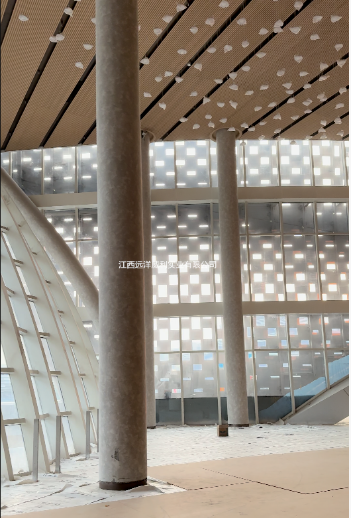 4.包圆柱:造型适配与结构稳定的平衡 音乐厅内的圆柱造型是空间设计的重要元素,要求包裹材料既能够贴合圆柱曲面,又具备足够的结构稳定性。低密度灰硅基层板韧性出色,可根据圆柱直径进行灵活弯曲,无需复杂的预处理工艺即可实现紧密包裹,展现出流畅的曲面效果。同时,板材强度适中,包裹后能够形成稳定的保护层,有效保护圆柱结构,且表面光滑平整,为后续的装饰面层施工提供了便利条件。