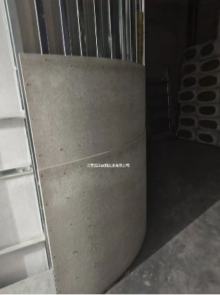 外弧,直接成型;自攻螺丝固定在龙骨上方,边缘打钉板材不爆边,不破裂!