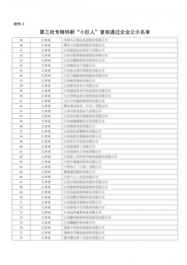 喜报!远洋威利通过国家级第三批专精特新“小巨人”复核9月2日,根据工信部统一部署,江西省工业和信息化厅发布了《关于江西省第六批专精特新“小巨人”企业和第三批专精特新“小巨人”复核通过企业名单的公示》。江西远洋威利实业有限公司凭借其在技术创新、市场竞争力、品牌影响力及专业化发展等方面的出色表现,成功通过复核,自2021年获得专精特新“小巨人”称号,远洋威利始终以创新为核心,紧跟国家发展战略,积极投入研发。通过不断优化产品结构、提升服务质量,为客户提供绿色低碳防火建筑材料。再次荣获国家级专精特新“小巨人”企业称号,标志着远洋威利在高质量发展道路上迈出了坚实的一步。