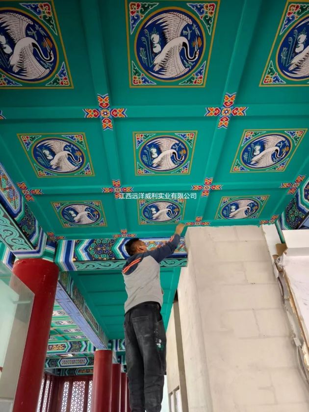 Yongding Tower in Beijing, as a new landmark building in Mentougou District. It is said that the design inspiration of Yongding Tower comes from the Yellow Crane Tower, which is known as one of the "Three Famous Towers in the South of the Yangtze River". The overall architectural design is majestic yet exquisite, while upholding China's unique ancient architectural style and carrying profound historical memories. However, the wooden ceiling structure, which has gone through a century of wind and rain, is facing problems such as aging, fire hazards, and fading decorations. How to improve safety and artistry while protecting the original appearance of ancient buildings? The application of Ocean Willy's low-density gray silicon baseboard provides an innovative solution to this problem, and with its A1-class fire resistance and surface decorability, it demonstrates the unique value of modern building materials in the renovation of ancient buildings. Project Challenges The renovation of the ceiling of Yongding Tower must meet three core needs: 1. Safety: The wooden structure has a low fire resistance rating and must comply with the strict fire protection standards for ancient buildings; 2. Aesthetics: Traditional hand-painted colorful paintings need to rely on stable substrates to ensure that the patterns are long-lasting and do not fade; 3. Compatibility: New materials need to be lightweight and easy to install to avoid damage to the original structure. Traditional gypsum boards and wooden boards are difficult to meet the needs due to problems such as flammability, susceptibility to moisture, and insufficient load-bearing capacity, so there is an urgent need for an innovative material that combines functionality and adaptability. Project Details Project Name: Beijing Yongding Tower Ancient Architecture Project Applied Product: Low-density Gray Silica Base Board Used Thickness: 9mm thick Application Part: Ceiling Project Highlights: Due to the failure to meet the requirements of fire acceptance, Yuanyang Weili low-density gray silica base board helped the project pass the fire acceptance, making the building fireproof and non-combustible. Product Application Highlights: By restoring the traditional wooden ceiling on a one-to-one scale, including the flat and grid parts as well as the color craftsmanship and patterns, it has achieved the ceiling application advantages of integrating beauty, fire resistance, fire endurance, moisture resistance and durability.