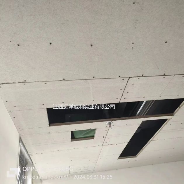 在施工过程中,低密度灰硅基层板具有轻质柔性的特点,该项目多个检修口,灯孔,空调出风口开孔处施工方便简捷。 产 品 介 绍