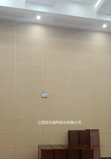 产品应用优势 (一)出色的吸音功能,提升空间声学环境 灰硅饰面板(穿孔)采用独特的穿孔设计,结合远洋威利低密度灰硅基层板的材料特性,形成高效吸音结构,其表面的细密穿孔与板材内部的微孔结构,能够有效吸收不同频率的声音,减少声音反射与共振。在此次多媒体空间吸音墙的项目应用中,该材料大幅降低了空间内的回声干扰,无论是演讲时清晰的语音传递,还是影音播放时震撼的音效呈现,为使用者带来了沉浸式的视听体验。 (二)施工便利,高效推进项目进程 相比传统吸音材料复杂的安装工艺,灰硅饰面板(穿孔)具有施工便捷的显著优势:其板材规格标准,可根据墙面尺寸进行定制加工,减少现场切割损耗,安装过程通过简单的拼接、自攻螺丝固定方式,即可快速完成墙面铺设。施工团队利用这一特点,有效缩短了施工周期,降低了人工成本,同时减少了施工过程中对周边环境的影响,确保大会堂能够尽快恢复使用,满足市民的文化活动需求。 (三)绿色环保,守护公共健康 在环保意识日益增强的今天,公共建筑的材料选择尤为关键。灰硅饰面板(穿孔)采用环保型原材料制作,经权威机构检测,其甲醛释放量远低于国家标准,在长沙县市民大会堂的应用中,该材料不仅为使用者营造了健康安全的室内环境,也符合公共建筑在环保方面的高,体现了项目团队对可持续发展理念的践。 (四)声学与美学的统一性,打造功能与视觉的双重价值 灰硅饰面板(穿孔)通过精密的穿孔孔径与排列设计,将声学性能与空间美学深度融合,其表面的穿孔图案可根据室内设计风格定制为几何矩阵、渐变韵律等造型,不仅能通过孔结构与板材内部微孔形成高效吸音体系,还能以规律性的孔洞排列构成视觉效果,使吸音墙成为空间内的艺术装置,穿孔设计结合灯光效果,在解决回声问题的同时,为多空间增添了现代艺术感,可实现 “降噪即造景” 的设计理念。 (五)表面样式多元化,适配多元场景需求 支持多样化表面处理工艺,可满足不同建筑风格的美学要求: 色彩定制:通过覆膜工艺实现乳白、木纹等基础色系,或根据空间主色调调配专属色号; 纹理质感:表面可呈现木纹、石纹、布纹、金属拉丝等肌理,增强触觉与视觉的层次感; 图案定制:可在穿孔基础上叠加雕刻工艺,嵌入城市文化符号、艺术纹样等个性化图案,使吸音墙成为兼具功能与文化属性的空间标识。