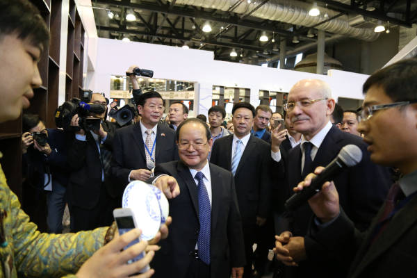 鹿心社省长和哈米托夫总统一同亲临江西商品展展会现场并巡馆